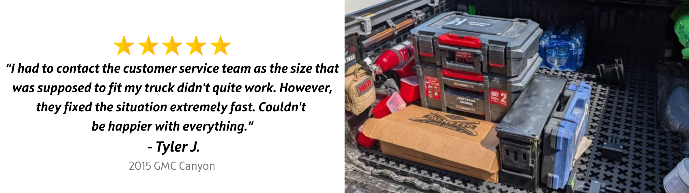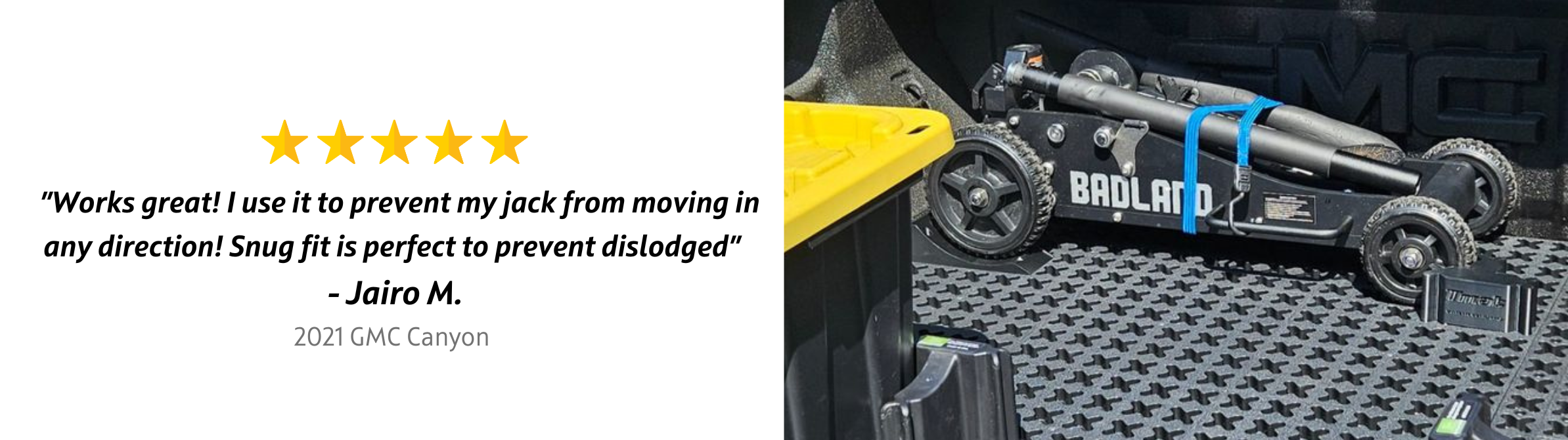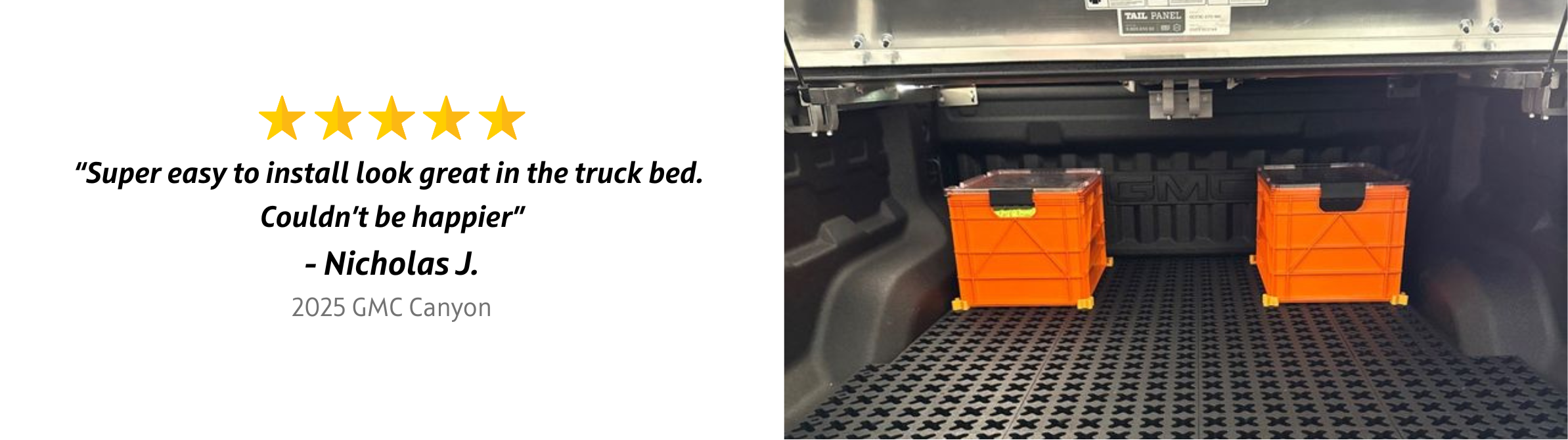 Organize your GMC Canyon’s bed with this cargo management system made for efficient truck bed organization. Adjustable blockers plug into the mat in any configuration, creating compartments for tools, gear, and equipment. Designed to fit between the wheel wells, it slides out to the tailgate for quick access. Works with drawer systems, bed slides, and other custom setups.