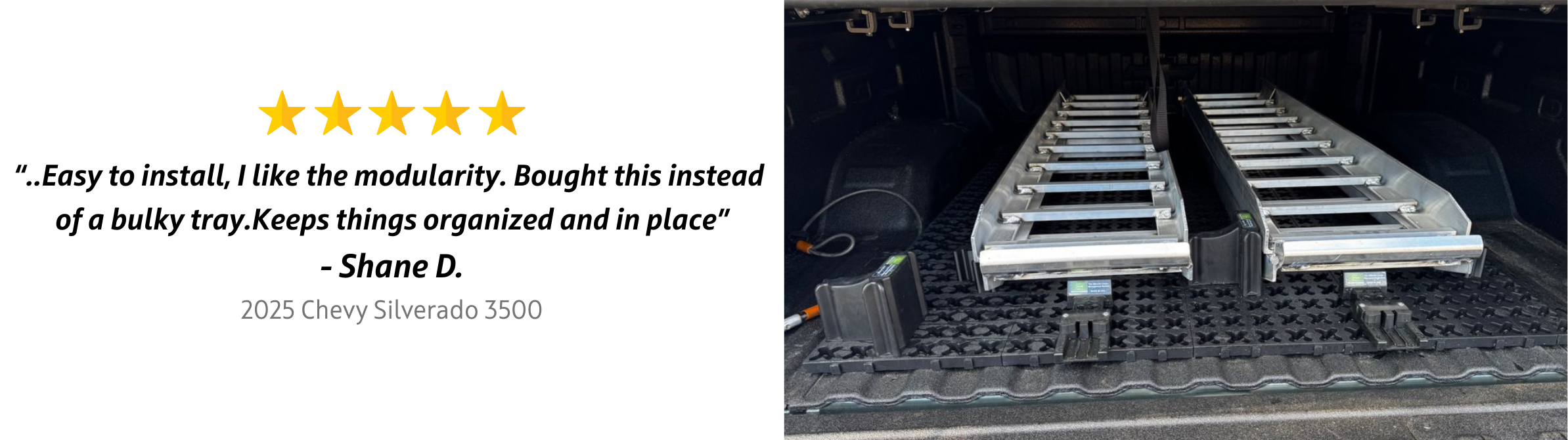 Organize your Honda Ridgeline with a cargo management system made for practical truck bed organization. Adjustable blockers fit into the mat in any configuration, creating compartments for tools, gear, and equipment. Designed to sit between the wheel wells, it slides out to the tailgate for fast, easy access. Compatible with drawer systems, bed slides, and other custom setups.
