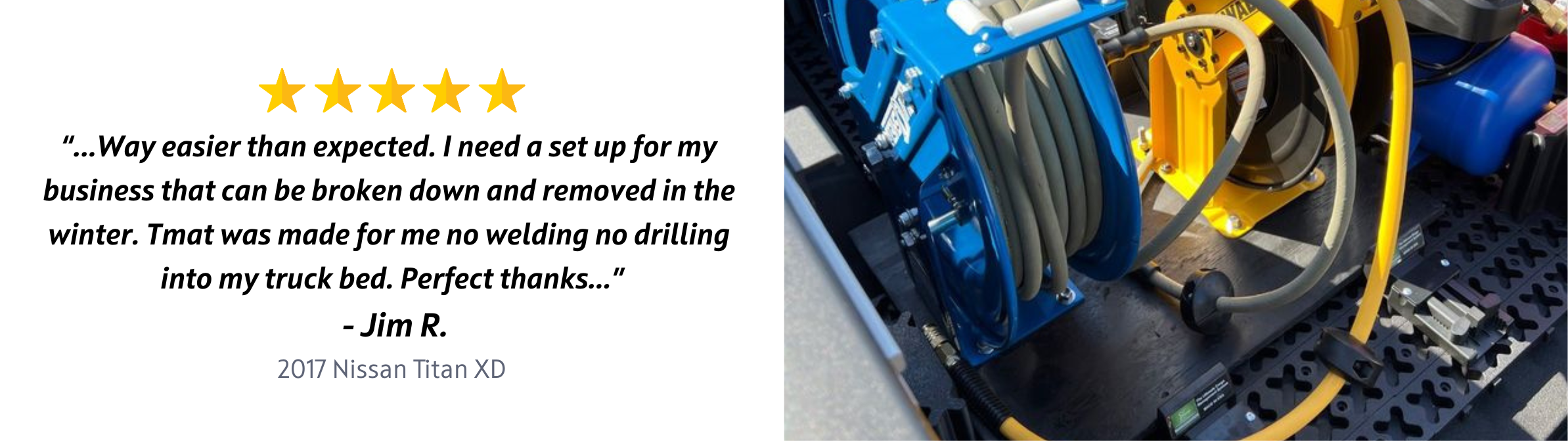 WARNING: Tmat is designed for enclosed and covered cargo areas such as covered truck beds, SUVs, vans, campers, and enclosed trailers. Extra precautions must be taken when used in an open-air cargo area to protect from wind and roll-overs. Tmat should never be used in an open-sided bed or with the tailgate down.