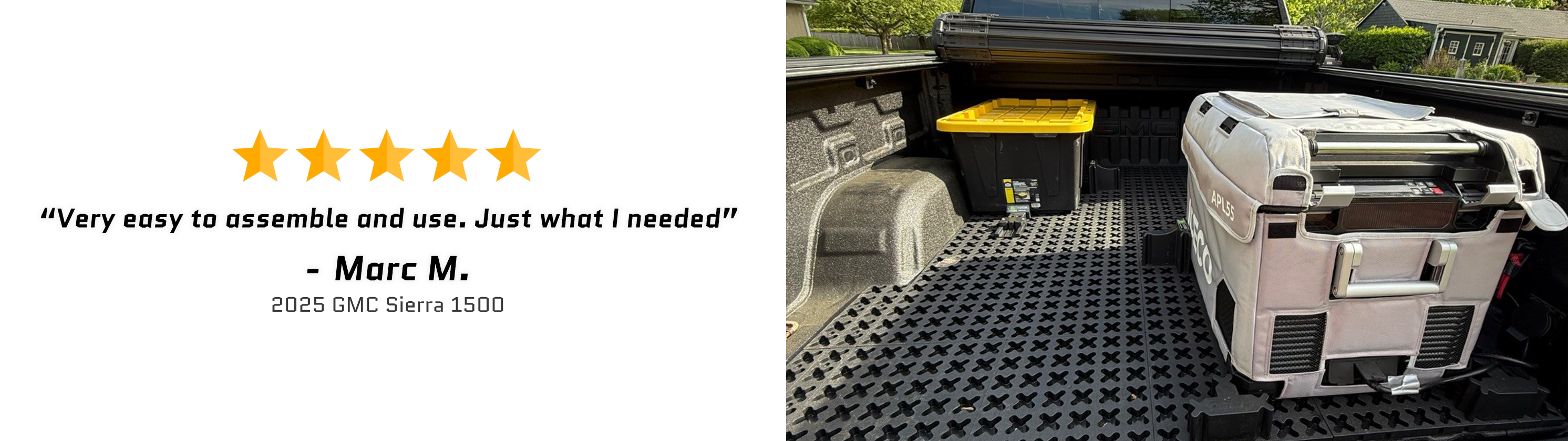 Upgrade your GMC Sierra 1500 with a cargo management system built for effective truck bed organization. Adjustable blockers insert into the mat in any layout, creating compartments for tools, gear, and equipment. It fits between the wheel wells and slides out to the tailgate for quick, easy access. Compatible with drawer systems, bed slides, and other custom setups.