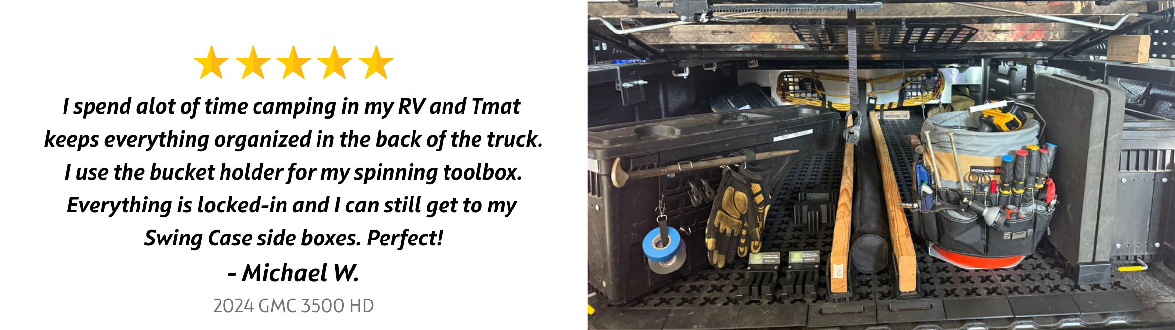 Expand your cargo management. Install Tmat and organize your trailer, van, utv bed, tac room - anywhere you work.