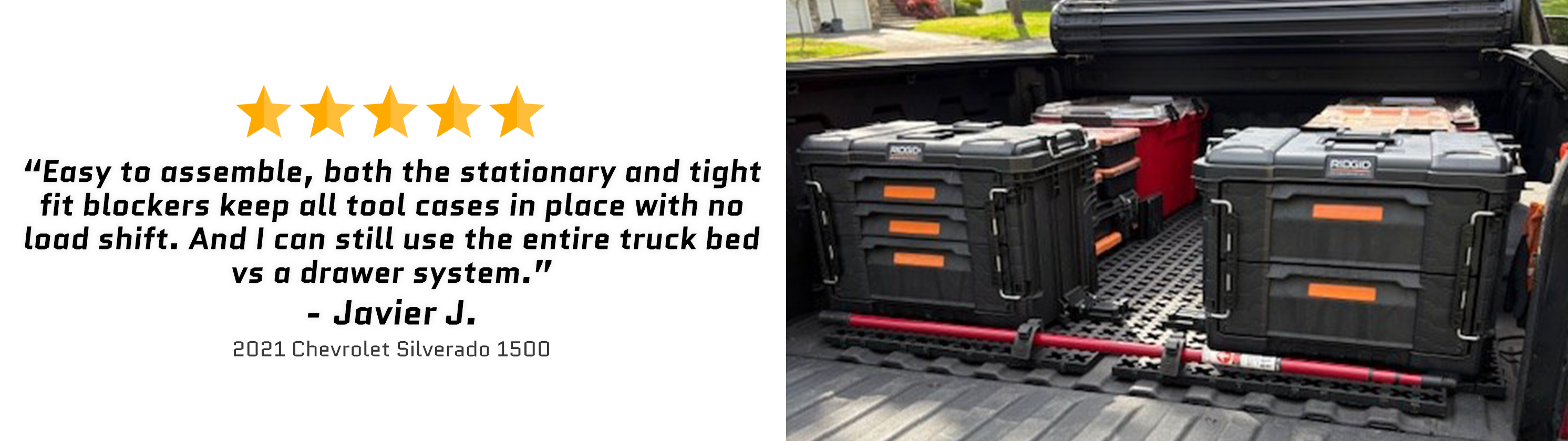 Organize your Chevrolet Silverado 1500 with this cargo management system designed for ultimate truck bed organization. The mat’s adjustable blockers can be positioned in countless ways to keep tools, gear, and equipment right where you want them. It fits neatly between the wheel wells and slides toward the tailgate, making loading and unloading effortless. Compatible with drawer systems, bed slides, and other custom installations.